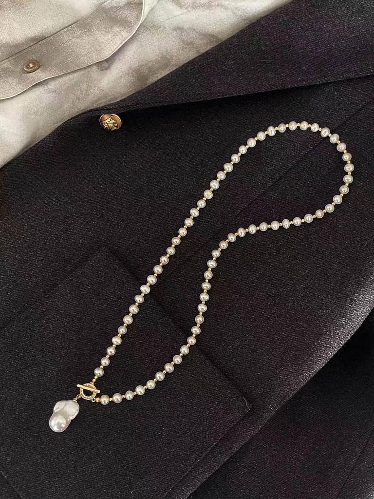 Colier cu Perle Naturale de Apă Dulce cu Perle Baroc Mari, Ideal pentru Pulovere de Toamnă/Iarnă și Stil Delicat High-End.