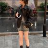 Women's Brown PU Leather Retro Motorcycle Jacket for Spring & Autumn