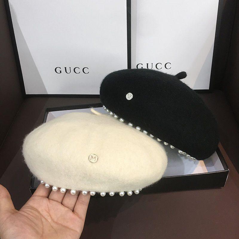 Women's Trendy British Retro Wool Beret: Autumn Winter Pearl Octagonal Hat for Women, Parent-Child, Kids' Painter Style.