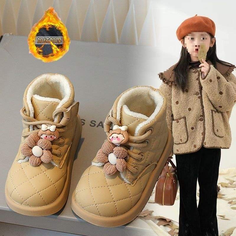 2025 winter girls velvet cotton boots middle children Martin boots women's treasure soft-soled Bobo cotton shoes children's warm snow boots