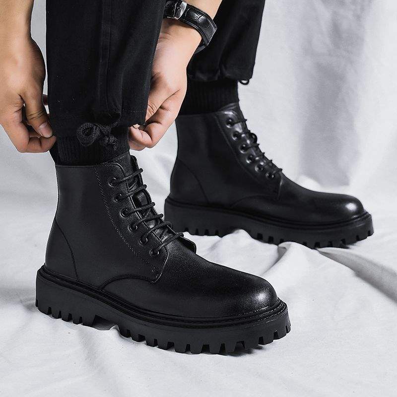 Autumn Martin boots Men's British high-top boots New mid-top leather shoes Black tooling Chelsea short boots