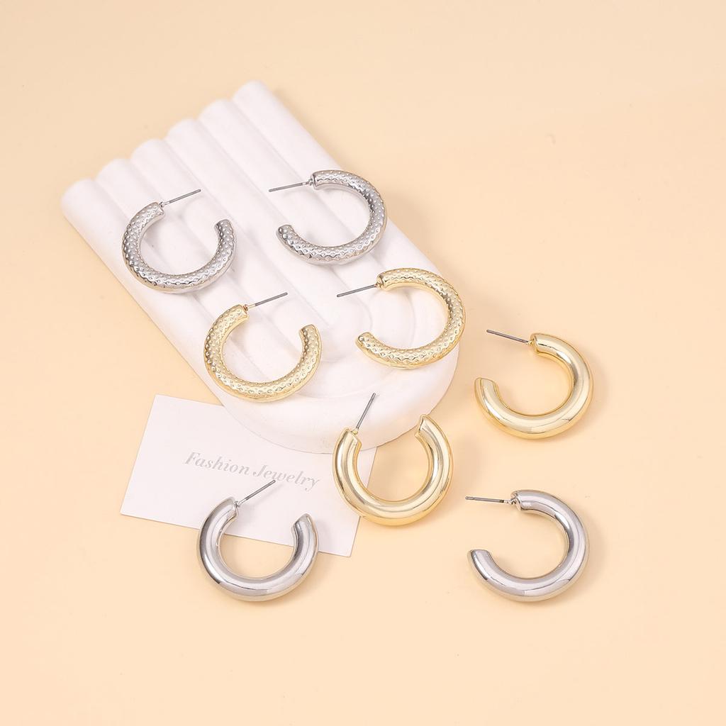 European and American hip-hop punk style metal unique texture, plain ring C-letter stud earrings, light luxury and high-end feel