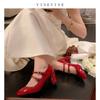 Retro Mary Jane women's shoes 2025 spring and autumn new French medium heel red single shoes women's thick heel small red shoes high heels