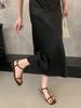 French square head open-toed niche wedge heel with sandals female 2025 summer fairy style with skirt Roman shoes