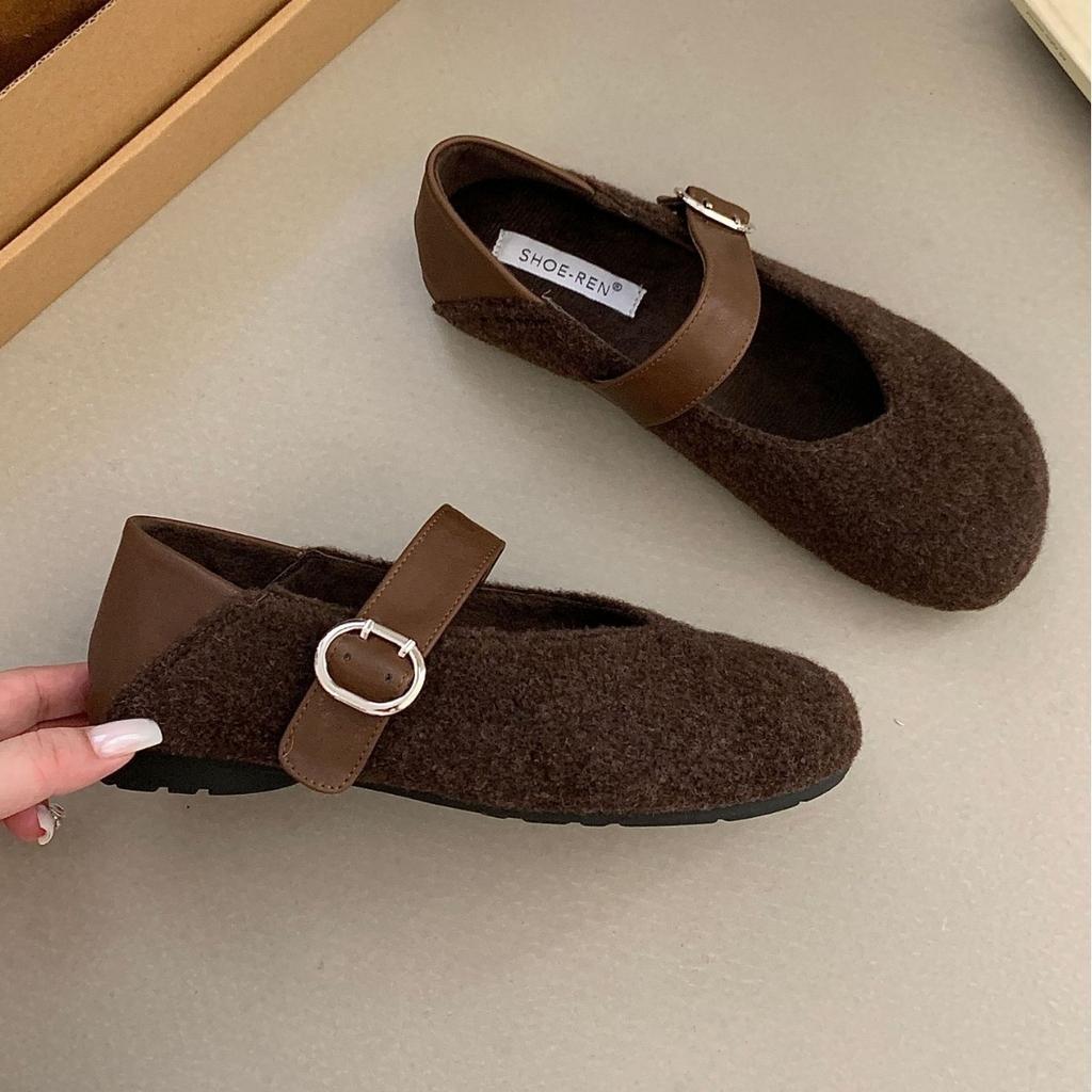 2025 autumn and winter new round head one-word buckle shallow mouth velvet versatile soft sole foot cover Doudou pregnant women's single shoes