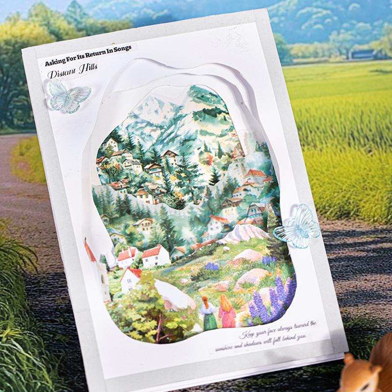 1 Roll/bag Landscape Tape PET Small Village Series House Landscape Hand Account Base Material DIY Decoration Card Gift Sticker