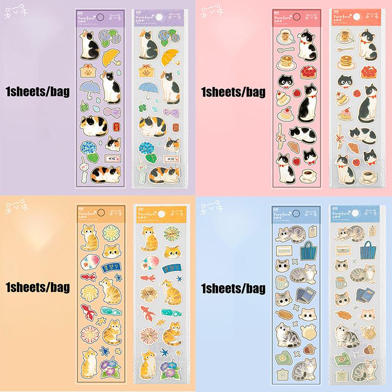 4styles Lovely Cat Gold Foil Stickers For Scrapbooking Hand Account DIY Photo Frame Decoration Journaling Collage Art Supplies