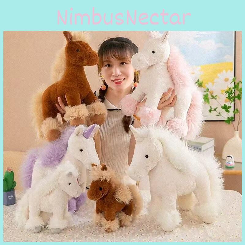 Crafted from short plush fabric and filled with soft PP cotton, they are luxuriously soft to the touch, making them perfect companions for children and adults alike.Available in an array of captivating colorsclassic white, enchanting purple, and sweet pink for the unicorns, alongside the natural brown and pristine white for the horsesthese plush toys cater to every preference and aesthetic. Standing at various heights of 25cm, 30cm, and 40cm, they can easily fit into any setting, whether as a decorative piece on your desk, a cozy pillow for your sofa, or a playful addition to a child's room.