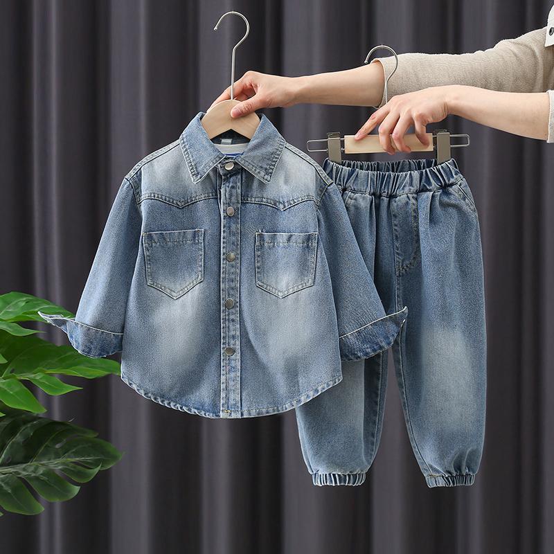 Boys' Denim Shirt & Jacket Set - Trendy Spring/Autumn Outfit for Toddlers - Stylish Internet Celebrity Two-Piece Ensemble