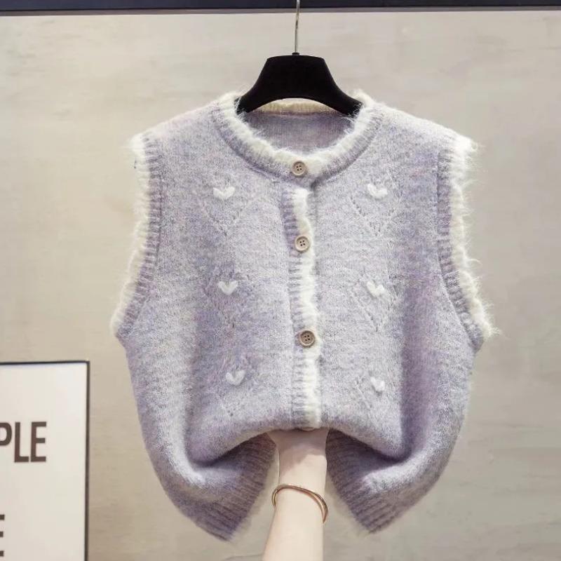 Cardigan Gât Rotund Vestă Tricotată Femei Toamnă Îmbrăcăminte Exterioară Largă Pulover cu Clips Cal Celebritate Internet