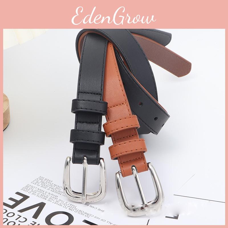 Womens Silver Needle Buckle Slim Belt Premium Minimalist Accessory Versatile