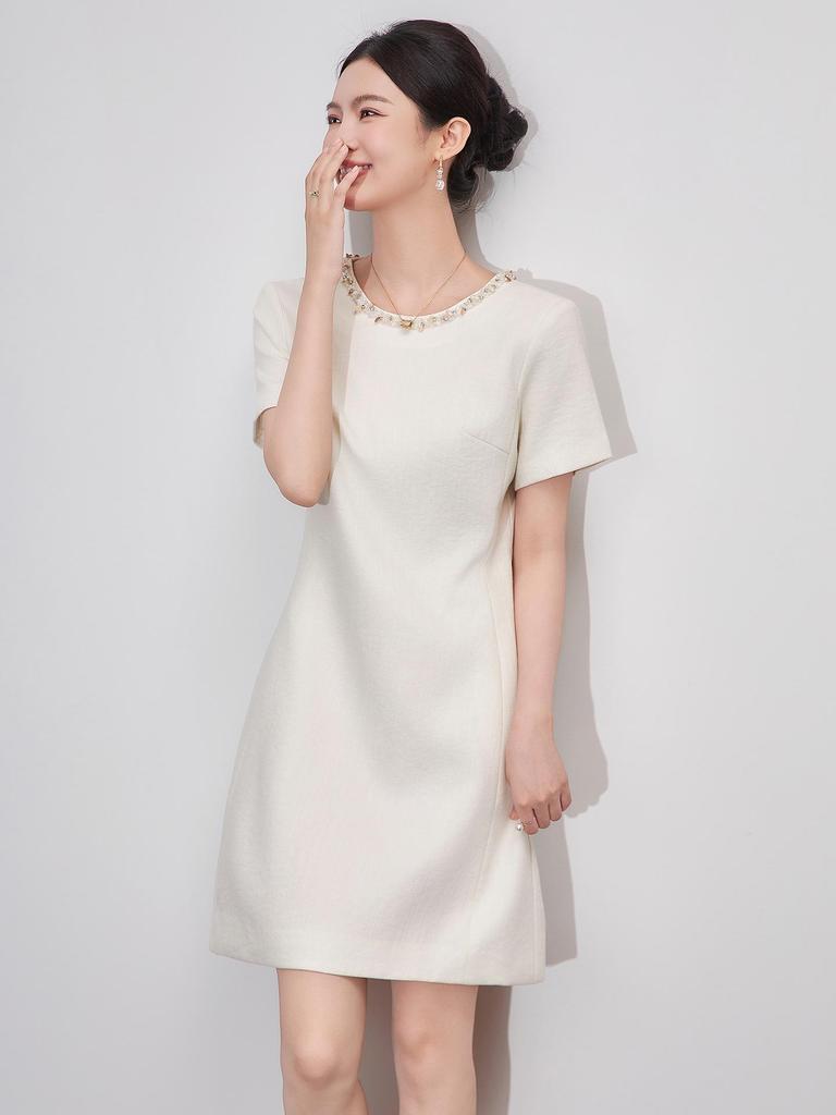 Elevate your summer wardrobe with this exquisite waist-defining dress, crafted from a luxurious blend of linen. Designed with a nod to French chic style, it features diamond embellishments that add a touch of elegance and sparkle. The dress offers a flattering silhouette, making it a perfect choice for any sophisticated summer outing.