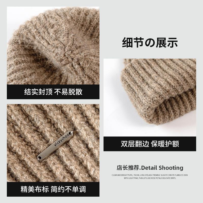 Metal small standard solid color versatile big head circumference fleece thickened fashion knitted hat women's winter ear protection cold hat tide