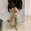New Style Luxury Women's Fashion Pointed Cowboy Coarse Heel Stacked Boots No Knee Large Barrel Women's Boot Mujer