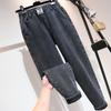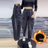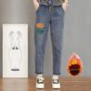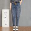 Women's High Waist Elastic Jeans: 2024 Autumn/Winter Retro Embroidered Harem Cropped Pants