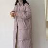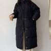 Women's Korean Style Mid-Length Down Jacket - Solid Color, Stand-Up Collar, Loose Fit, Warm Winter Coat.