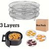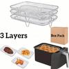 1/3Layer Stainless Steel Air Fryer Accessories Stackable BBQ Grill Rack Food Frying Basket Multipurpose for Baking Cooking Tool