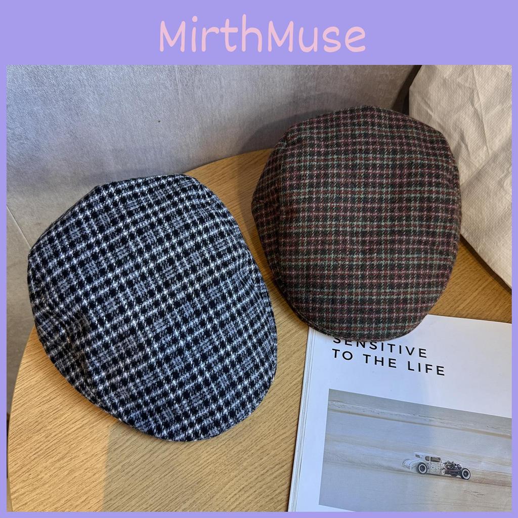 Retro Checkered Beret With Big Head Circumference Design For Autumn Winter Wear