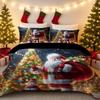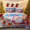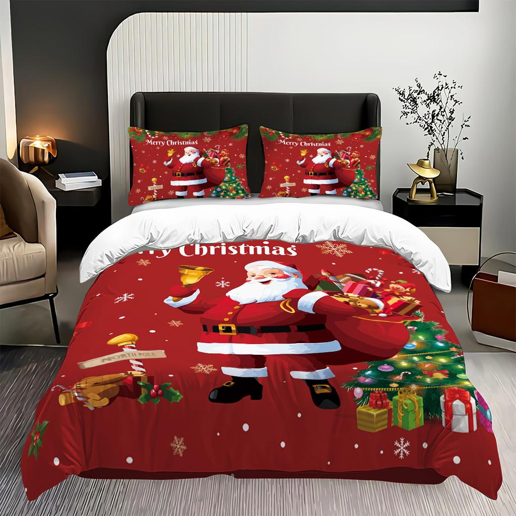 Husă de plapumă din trei piese Lenjerie de pat de Crăciun Față de pernă cu Moș Crăciun Husă de plapumă