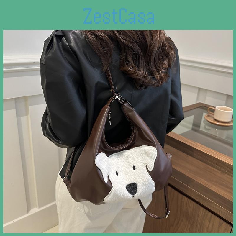 Vintage Cartoon Dog Pattern Underarm Bag Tote Bag Large Capacity Daily For
