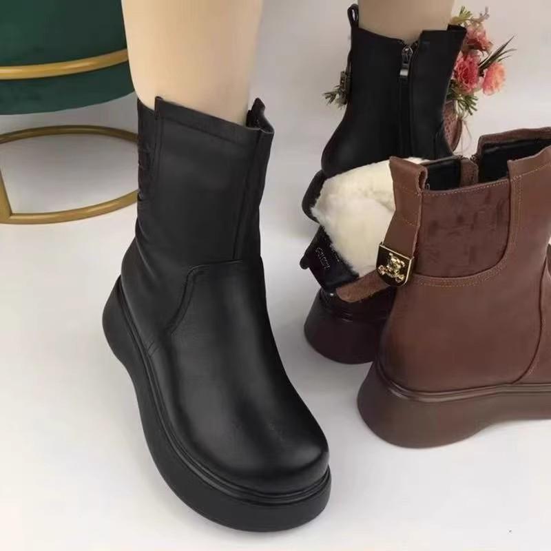 Cizme de zăpadă calde pentru femei până la jumătatea gambei - Piele și blană, cu talpă groasă și pluș, pregătite pentru iarnă pentru mame