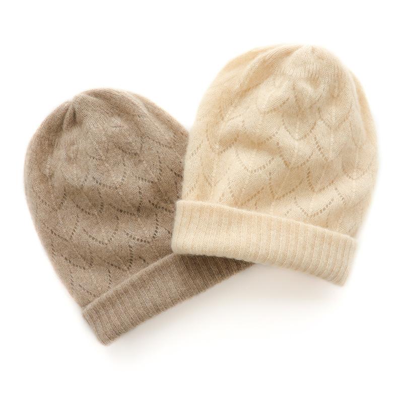 Cashmere Autumn and Winter New Hollow Houndstooth Pile Flanged Solid Color Warm Ear-protecting Baotou Knitted Hat