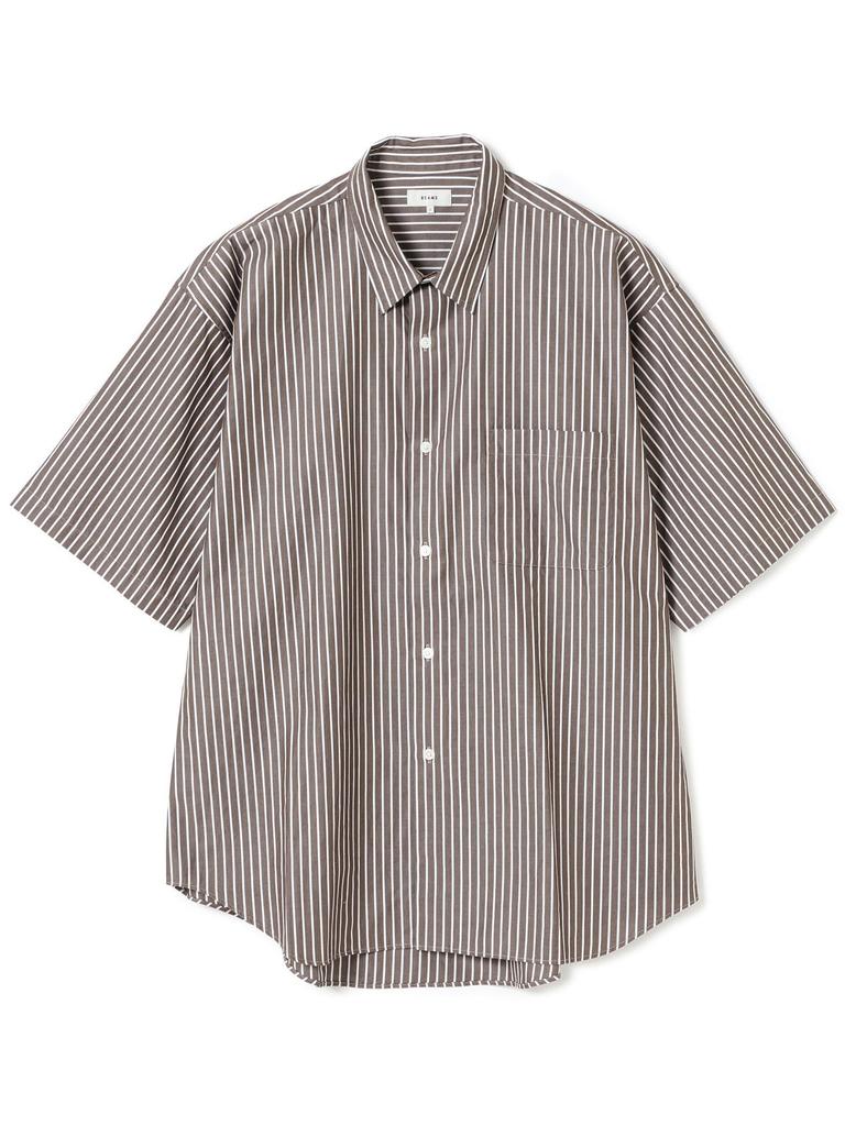 Beams Men's Striped Easy Mini Regular Collar S/S Shirt, Brown, Size M