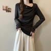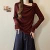 Plus Size Women's Retro Collar Irregular Long Sleeve T-Shirt - Autumn/Winter Slimming Waist Chic Top