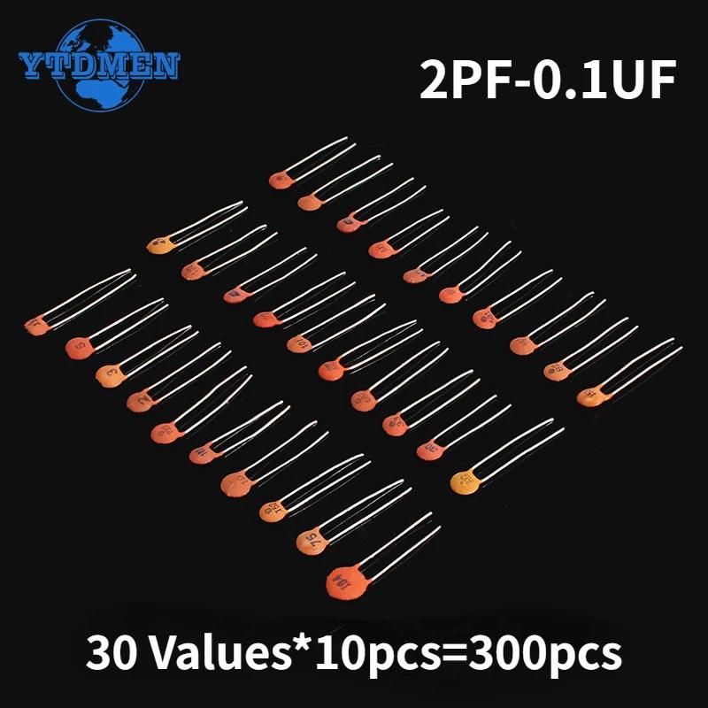 300PCS Ceramic Capacitor Set Pack 2PF-0.1UF 30 Values*10pcs Capacitor Assorted Kit