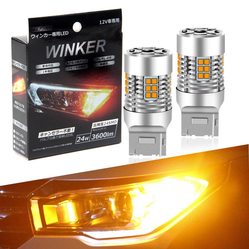 T20 LED Turn Signal Bulb with Differential Pinch Part, Reptico, High Fla Prevention Resistor,