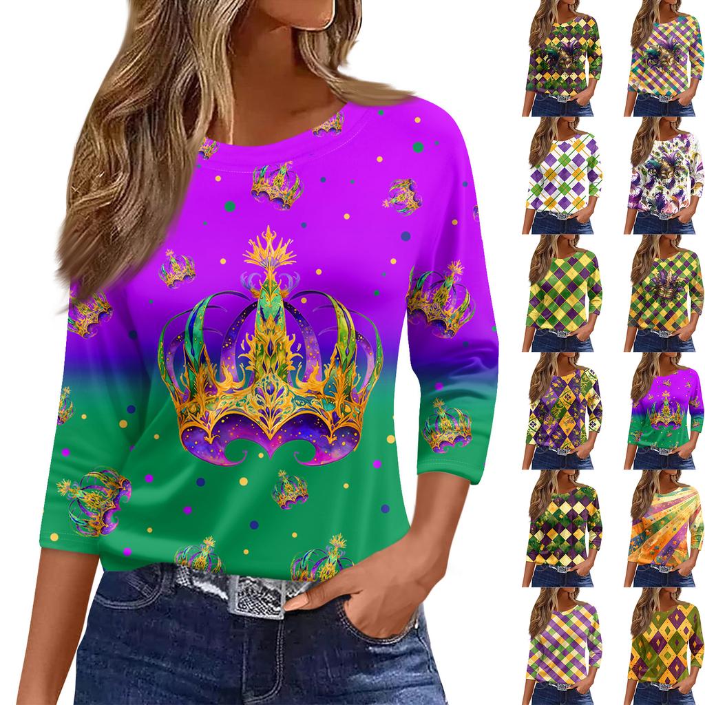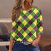 3/4 Length Sleeve Womens Tops Floral Print Vintage Fashion Casual Loose With Round Neck Plus Size Shirts