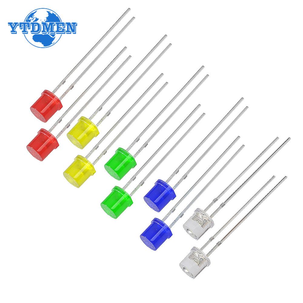 100PCS 5MM LED Lighting Diode Kit F5 Flat LED Diodes Red Yellow Blue Green White