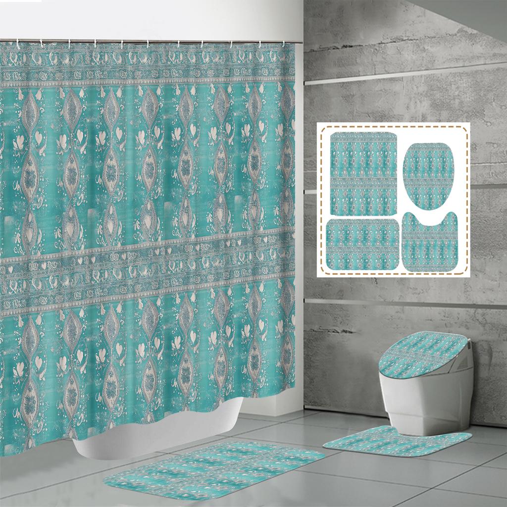4 buc Seturi Perdea de Duș Cu Perdea de Duș și Covoare Covor Capac Toaletă Covoraș în Formă de U și Covoraș de Baie Set Baie Cu 12 Cârlige