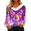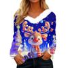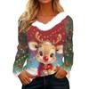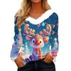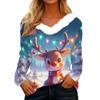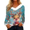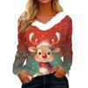 Women's Christmas Printed Long Sleeved Party Plush Neck V-neck Top