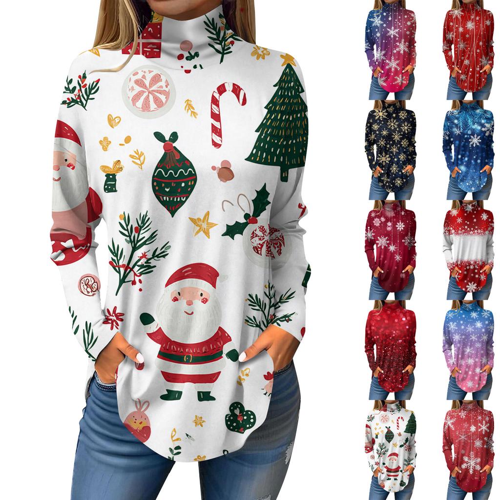 Cămăși de toamnă casual cu mânecă lungă Hanorac cu imprimeu vintage Pulover cu gât înalt