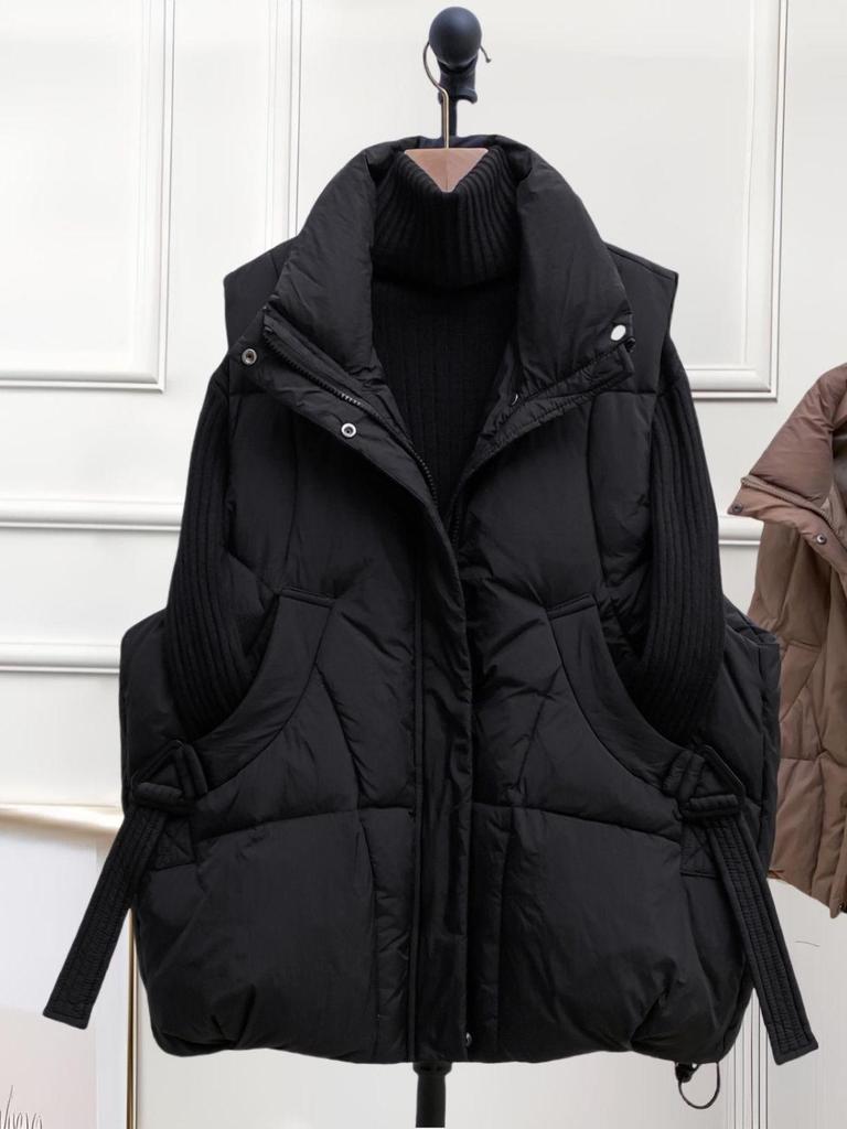 Jachetă Femei Mărimi Mari Lungime Medie Fără Mâneci - Vestă Groasă Călduroasă din Bumbac cu Puf pentru Toamnă/Iarnă