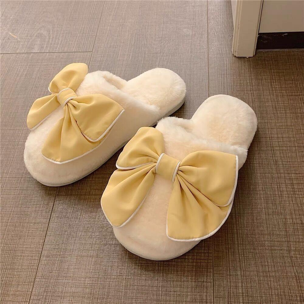 Cozy Bow Plush Slippers: Warm Non-Slip Indoor Cotton for Autumn & Winter