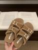 Belt buckle retro fluffy slippers for women's outer wear 2025 new autumn and winter indoor flat-bottomed velvet thermal cotton slippers