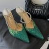 2025 spring and autumn new fashion versatile fashion gradual change rhinestone chain shallow high heels fairy crystal cool