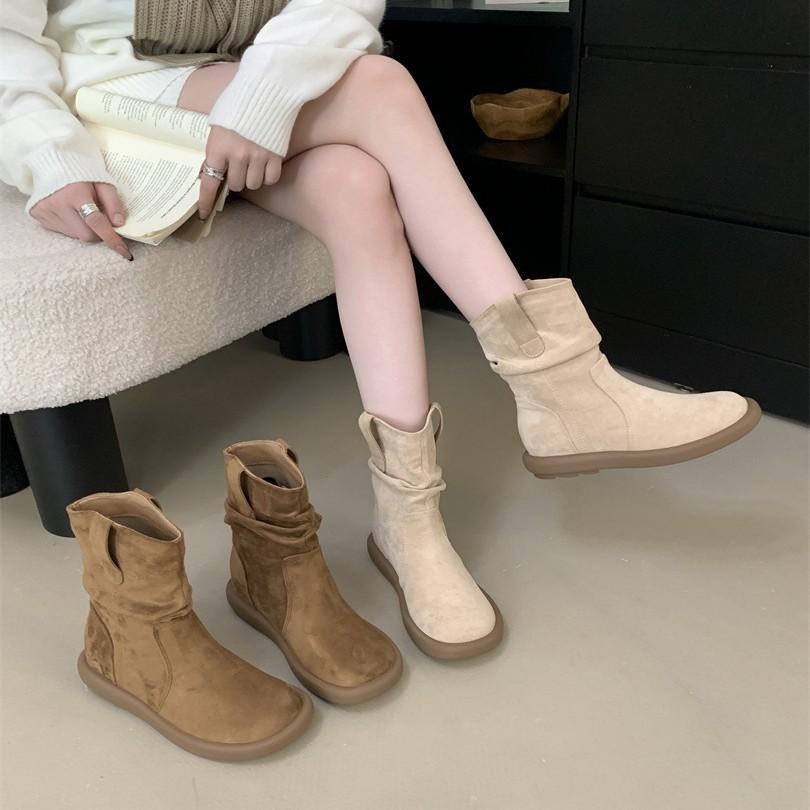 2025 autumn new retro versatile flat-bottomed western short boots lazy wind sleeve round head stacking boots