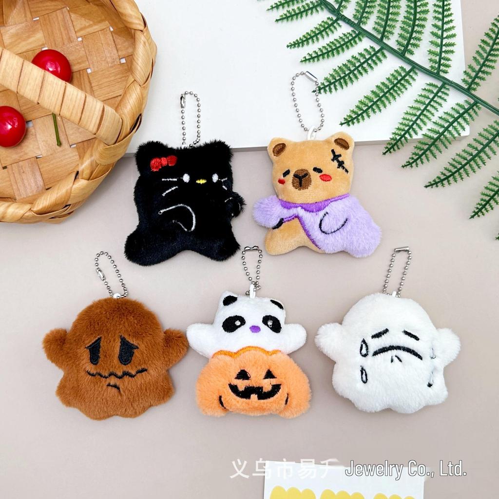 Cartoon Pumpkin Ghost Squeaky Plush Keychain - Halloween Gift Bag Accessory
