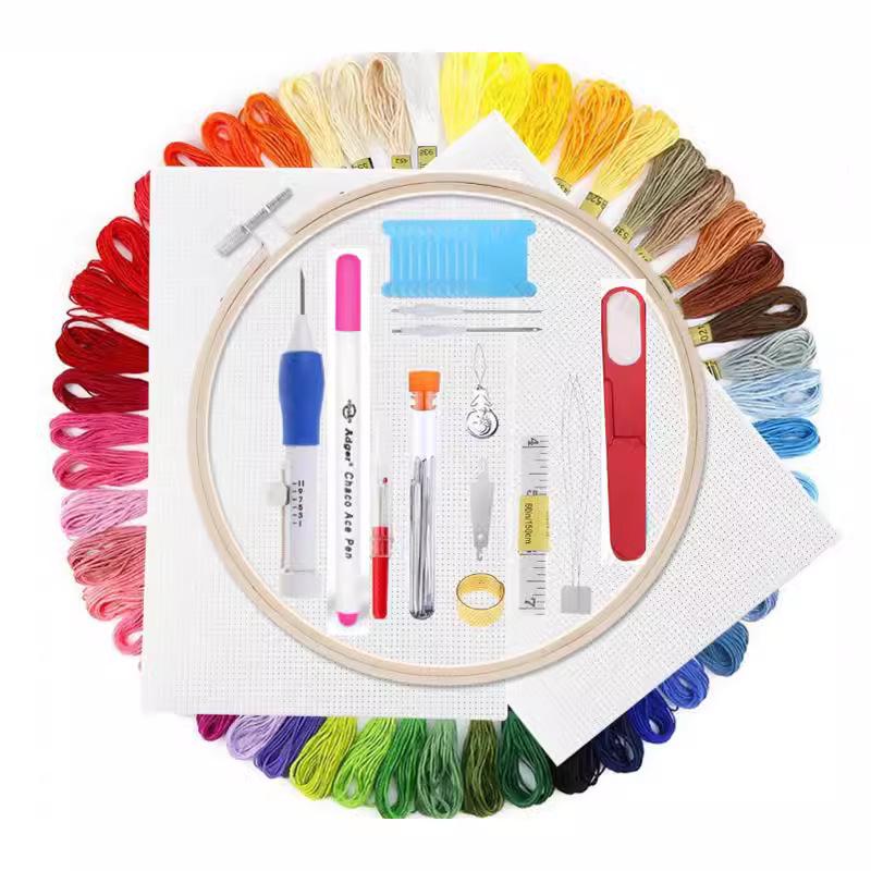 Set Acul de Pumn pentru Broderie și Ață de Mătase pentru Cusături în Cruce, Croșetă