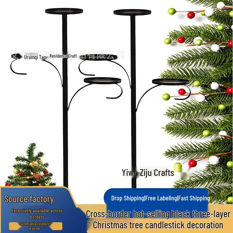 Black Triple Tree Topper Candelabra - Christmas Tree Decoration
