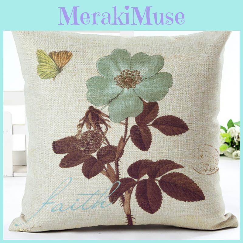 Floral Butterfly Leaves Pillow Summer Garden Scene Cover Bedroom Soft Decoration
