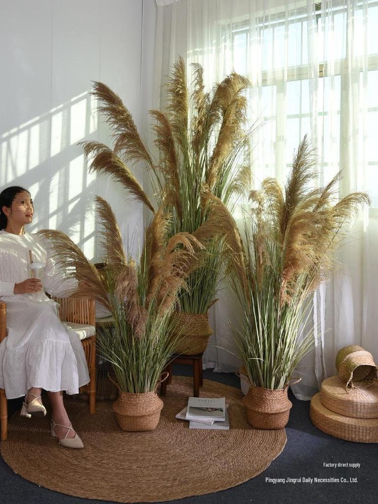 Natural Reed Faux Flowers & Potted Greenery for Home Decor