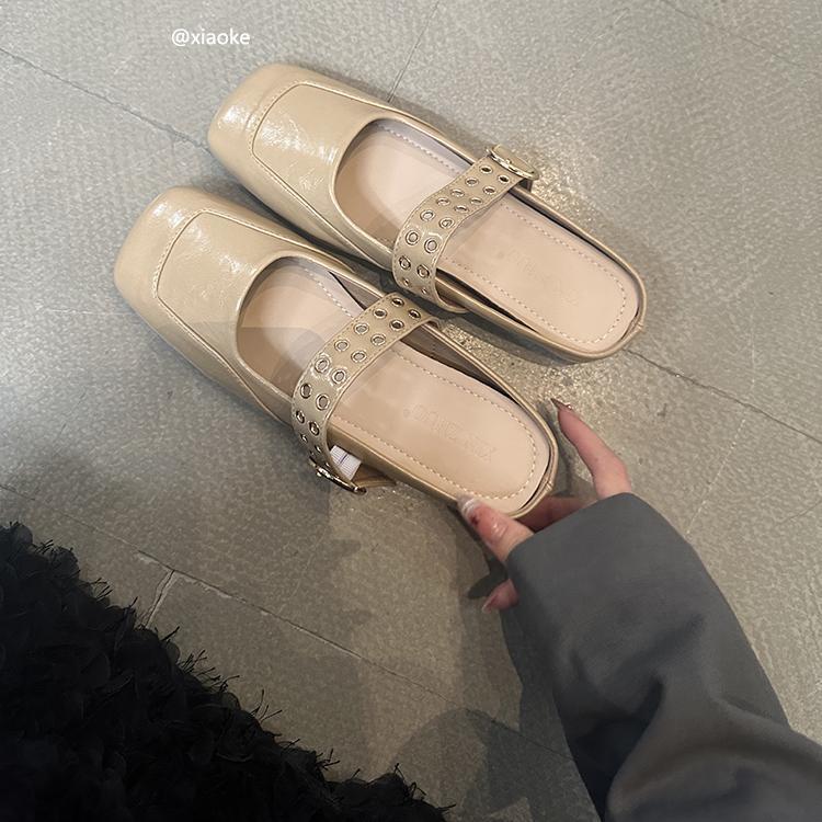 XINZHOU inner height increase square head Mary Jane shoes women's new 2025 bag head flat bottom half slippers outer wear cool slippers