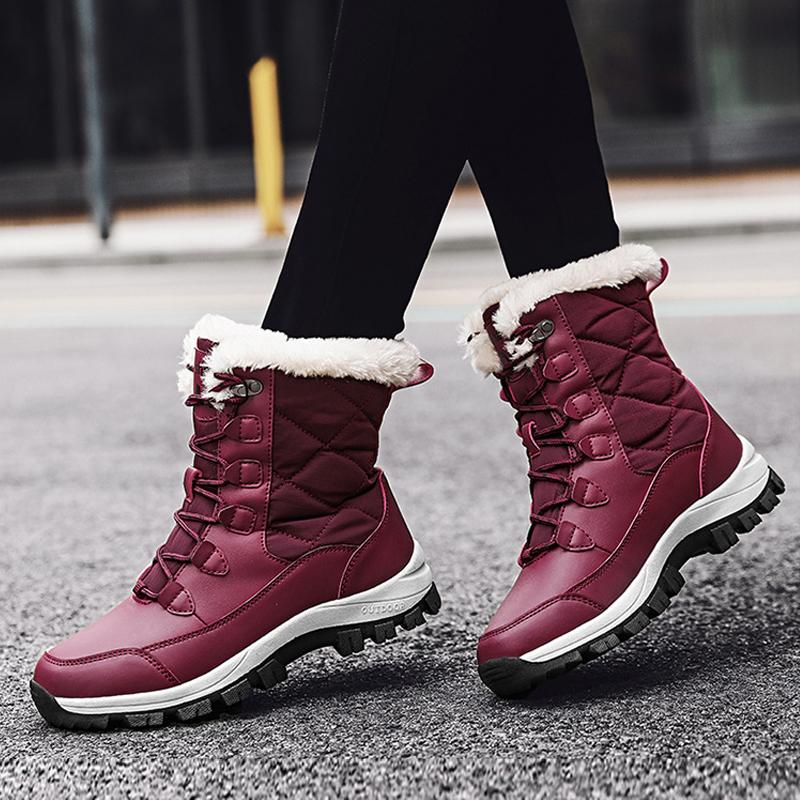 Winter Snow Boots Women Plush lining Hiking Shoes Outdoor Sport Shoes Waterproof Mountaine Shoes Anti Slip Trekking Shoes Women
