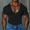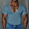 Tricou cu mânecă scurtă și gât în V pentru bărbați Tricou casual cu croială slim și culoare uni pentru bărbați Top cu mânecă scurtă pentru bărbați