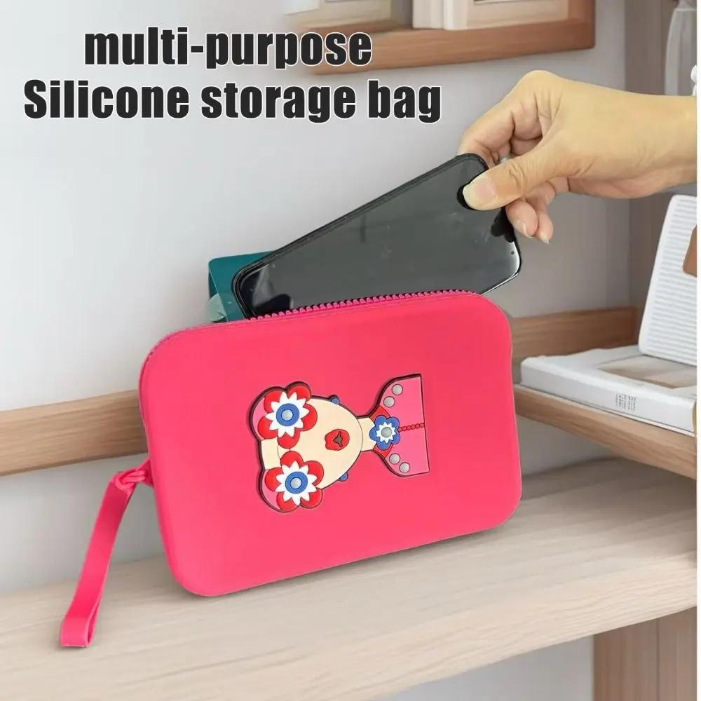 Fashion Waterproof Silicone Storage Bag Multi-purpose Portable Hanging Phone Bag Cartoon Cosmetic Bag