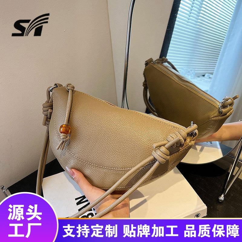 Versatile women's bag first layer cowhide horn shoulder saddle bag niche crossbody dumpling bag woman